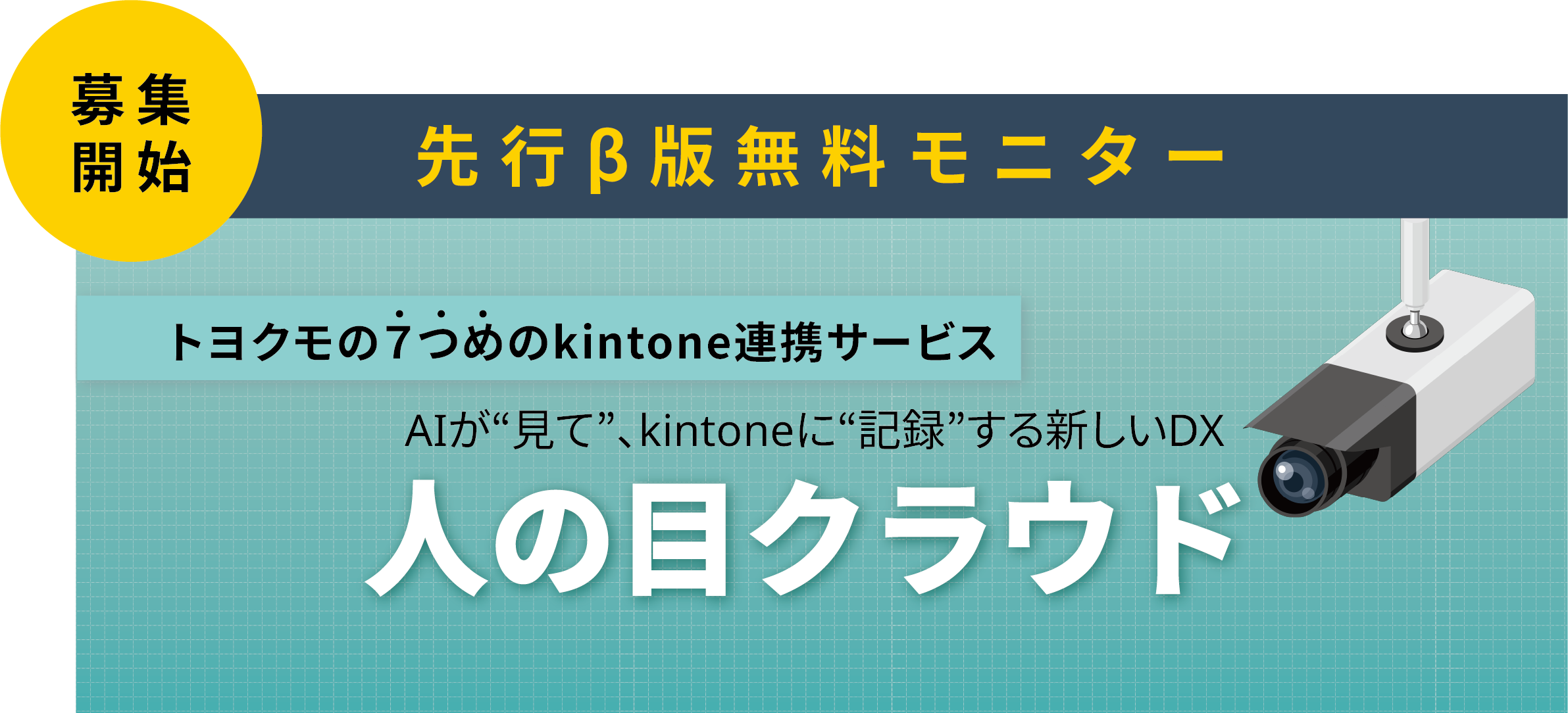 - 応募方法:β版はこちらからお申し込みください。 (注:本モニターのご利用には、kintoneのご契約が必須となります。)